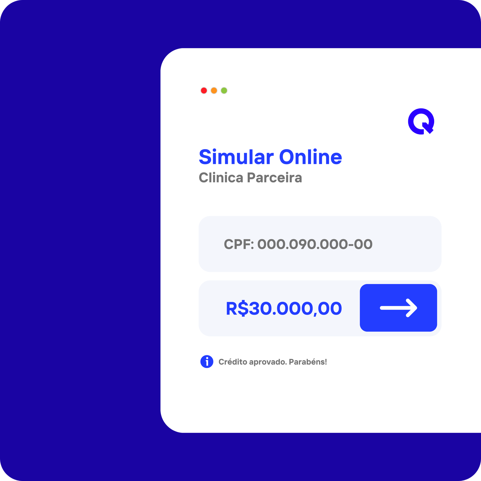 Financiamos de R$500,00 até R$30.000,00 em 24x no boleto bancário com pagamento em 3 dias útis na conta da clínica.